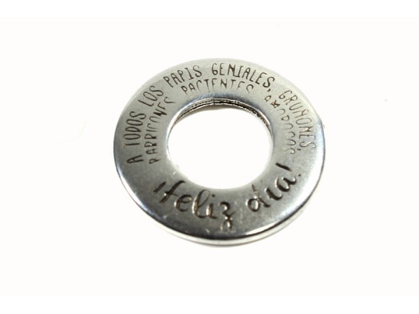 Anilla plana zamak baño plata *Feliz día* 25mm int 12mm