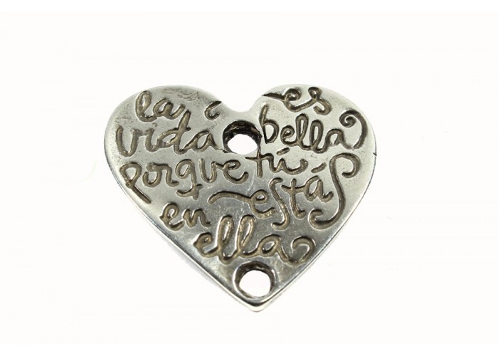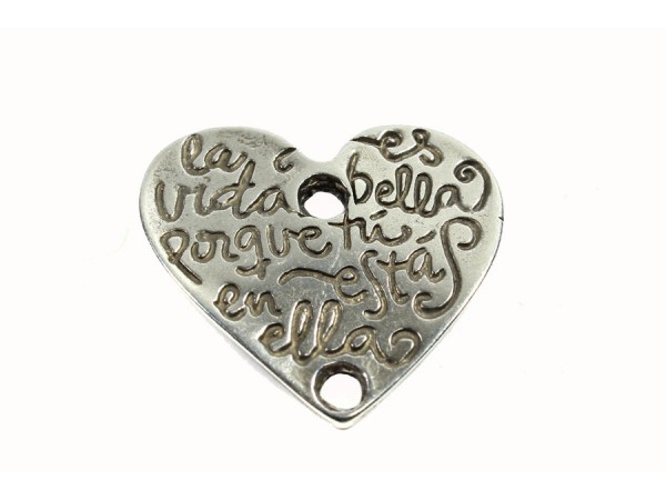 Colgante pasador corazón *la vida es bella..* 30 x 28 mm