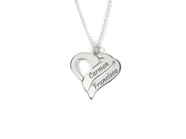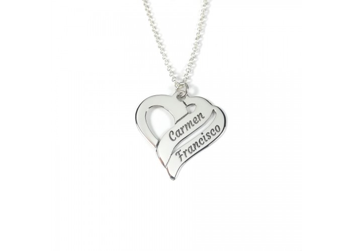 Collar Corazón con dos nombres 30 mm personalizados plata de ley 925