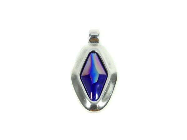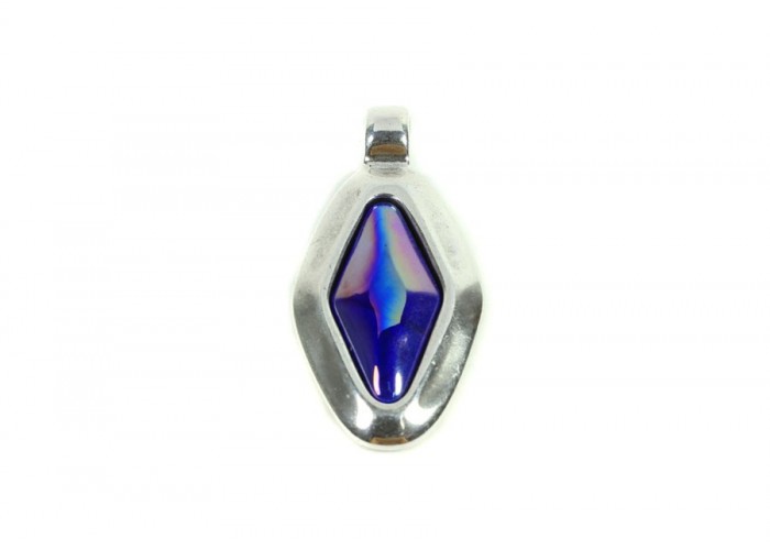 Colgante Zamak baño plata y cristal de Murano 50 x 22 mm Azul