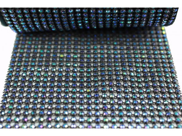 Tira de strass para coser calidad superior negro AB base negra 24 lineas x 1 metro