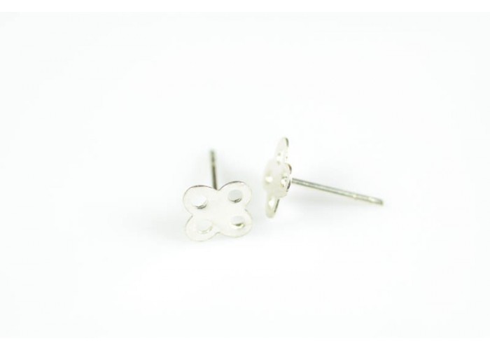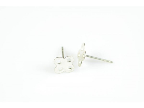 Base de pendiente flor plano 4 huecos para coser plata de ley x 1 par