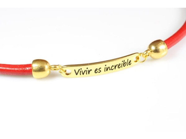 Pulsera frase "vivir es increible" 39x6,5mm interior de 3mm color oro