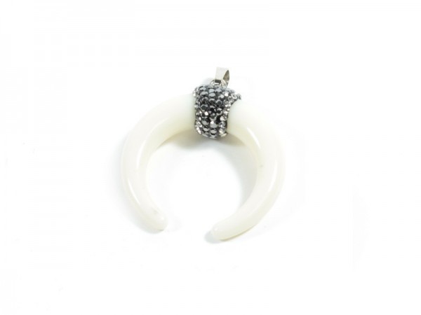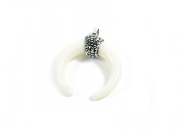 Colgante acrílico Cuerno doble con Strass 36mm Blanco