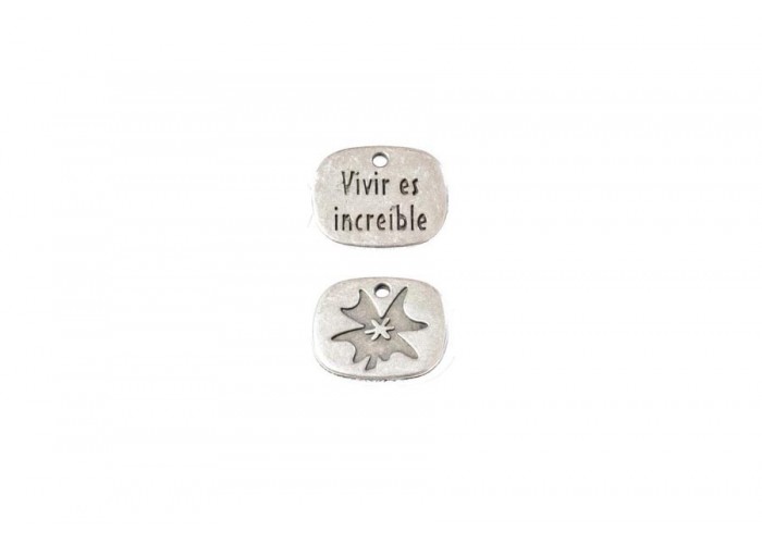 Colgante chapa frases mini 15x12mm "vivir es increible"