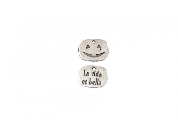 Colgante chapa frases mini 15x12mm "la vida es bella"