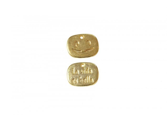 Colgante chapa frases mini 15x12mm "la vida es bella" color oro