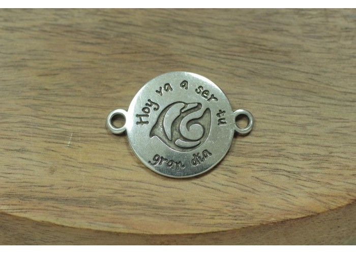 Conector dos aros delfín *hoy va a ser tu gran dia* 30x22mm