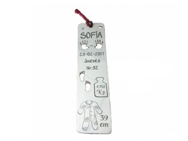 Marcapáginas Natalicio en Plata de Ley 925 con los datos de tu Bebé