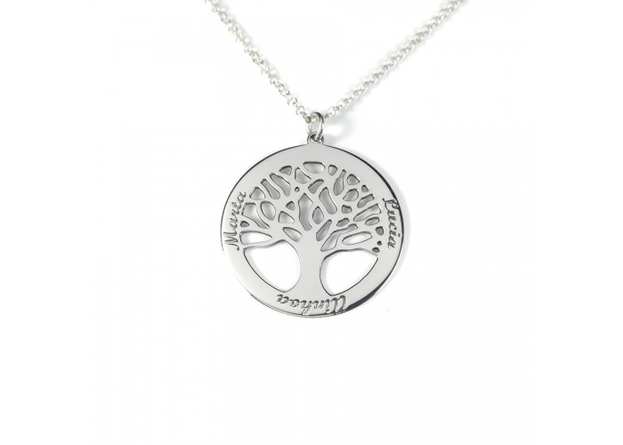 Collar Árbol de la vida 25 mm personalizados con nombre plata de ley 925