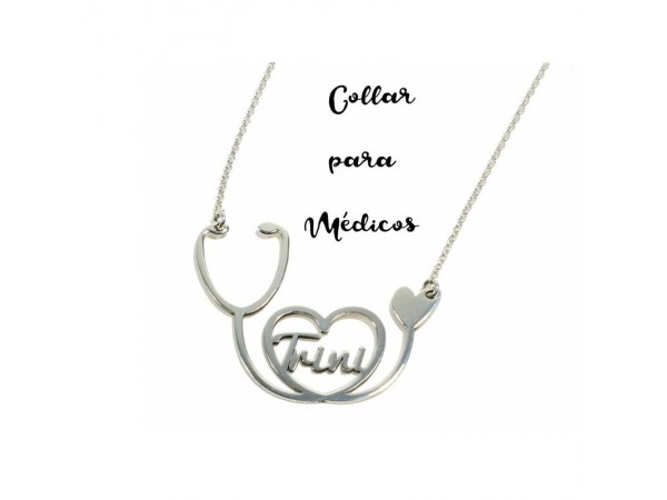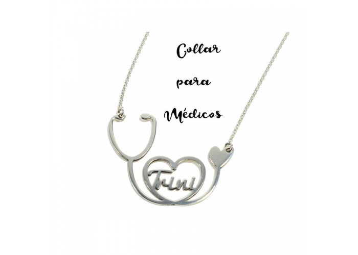 Collar Fonendoscopio con nombre en plata de ley más cadena y cierres en plata de ley 925