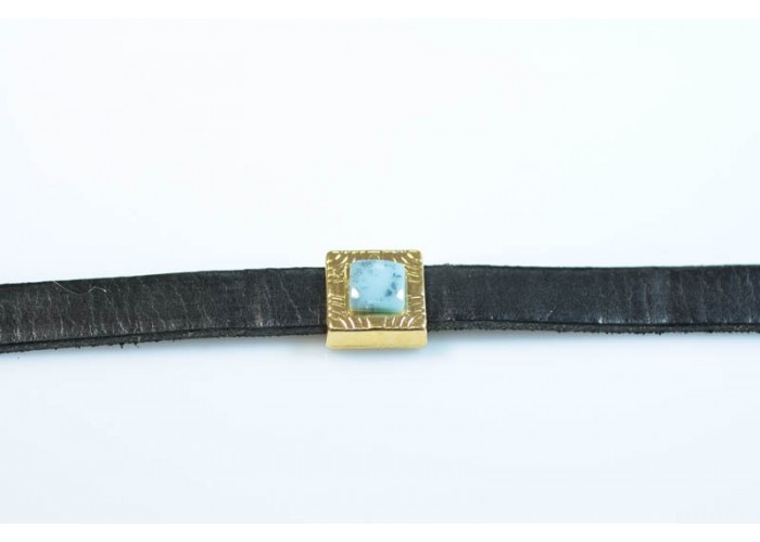 Entrepieza cuadrado rayado turquesa 10x2mm interior color oro