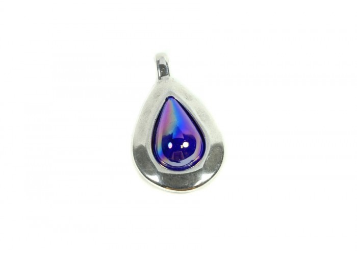 Colgante Zamak baño plata y cristal de Murano 45 x 22 mm Azul