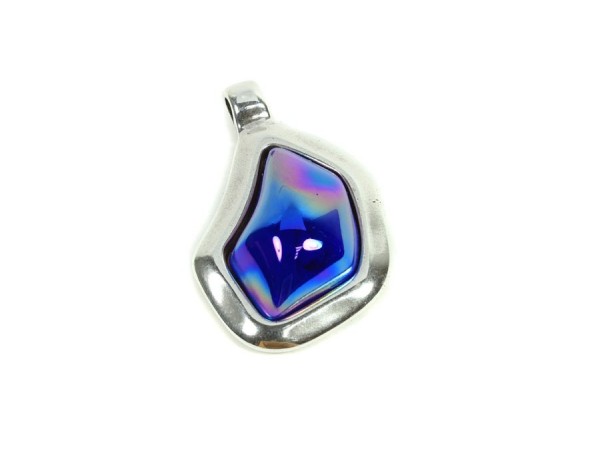 Colgante Zamak baño plata y cristal de Murano 52 x 35 mm Azul