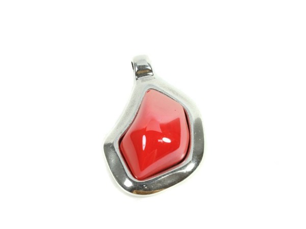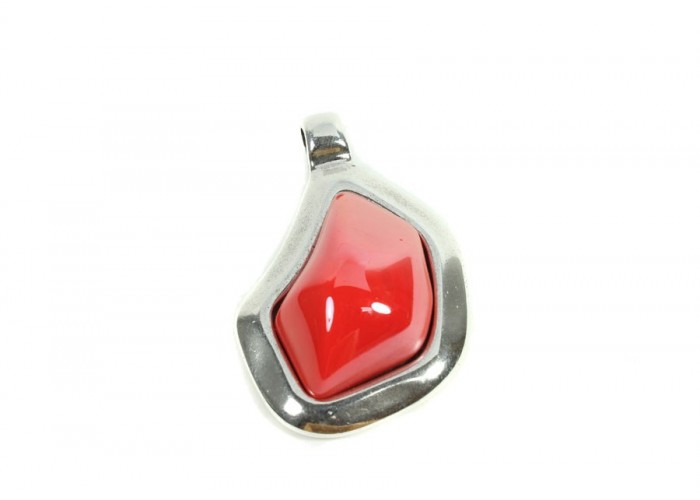Colgante Zamak baño plata y cristal de Murano 52 x 35 mm Rojo