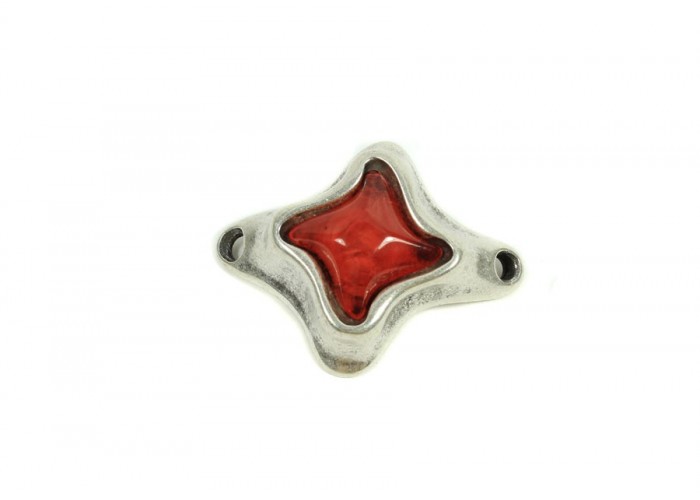 Conector Zamak baño plata Resina 46 x 35 mm pase 4 mm Rojo