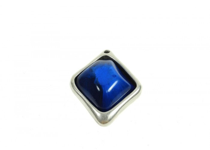 Colgante Rombo Zamak baño plata y Resina 41 x 35 mm Azul