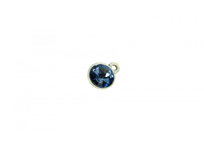 Colgante redondo Zamak baño plata y cristal swarovski 18 x 14 mm Azul oscuro