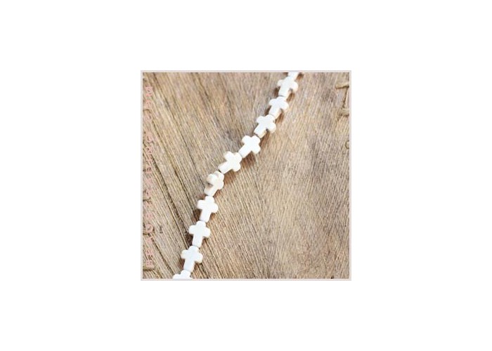 Tira de hueso cruz pequeña 1x0.5cm largo 40 cm Blanca/Turquesa