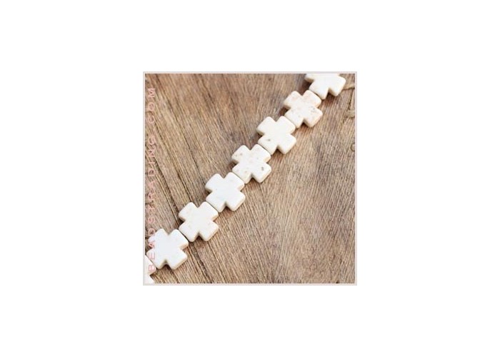 Tira de hueso cruz grande 1.5x1.5 cm largo 40 cm Blanco/Turquesa